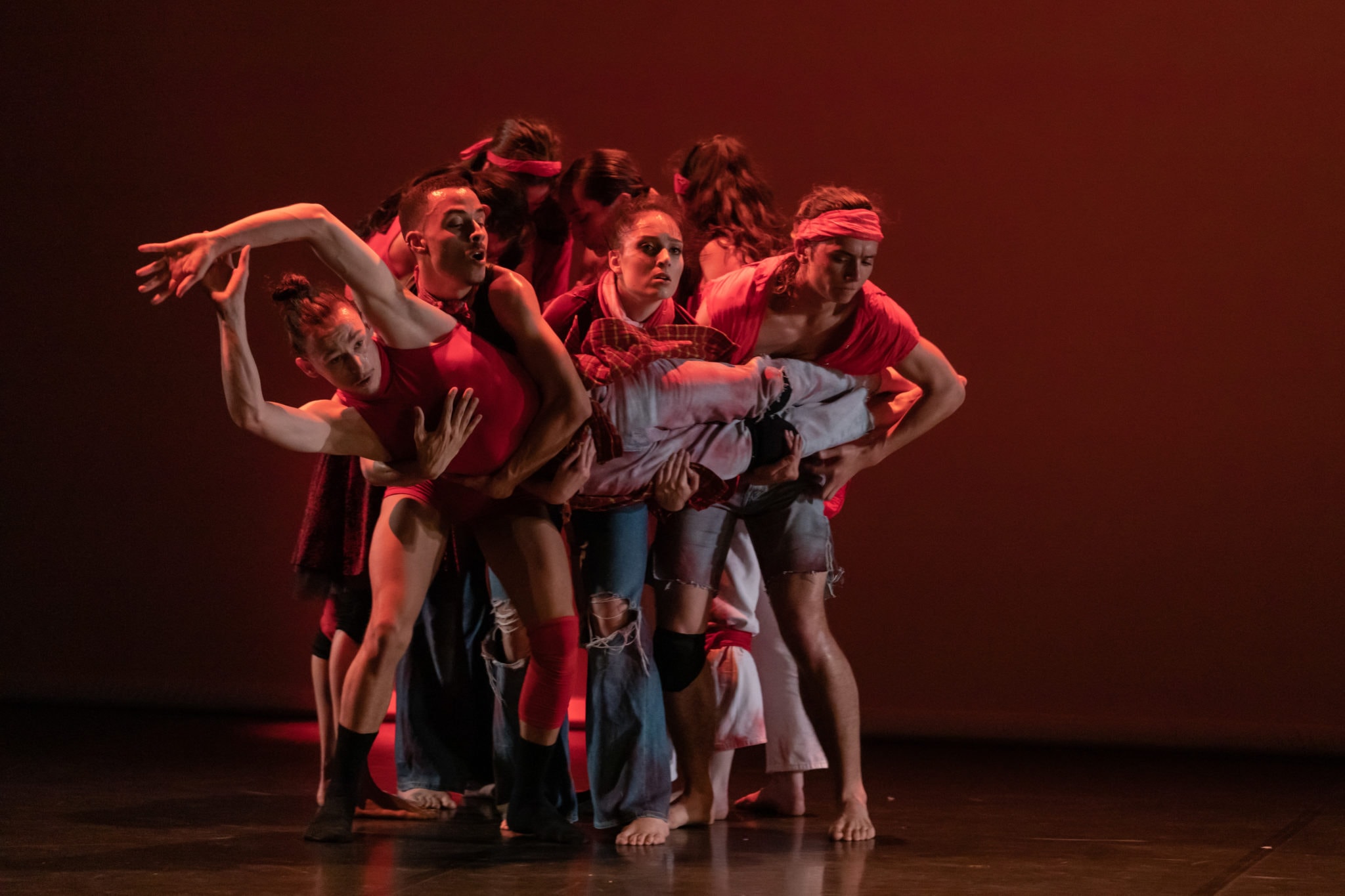 Je vois du rouge, je vois du feu, dans cette danse faite d’énergie où le geste embrase l’espace dans une aspiration à la liberté. Comme une référence à cet inconnu qui les attend, où tout est ardent, leur danse répond à cet embrasement. Dehors le feu s’empare des forêts, le feu embrase les sociétés, le feu consume les cœurs. Écho ou réponse. Il y a dans l’incandescence l’idée du lumineux, l’idée d’un péril délicieux, l’idée d’une brûlure convoitée.